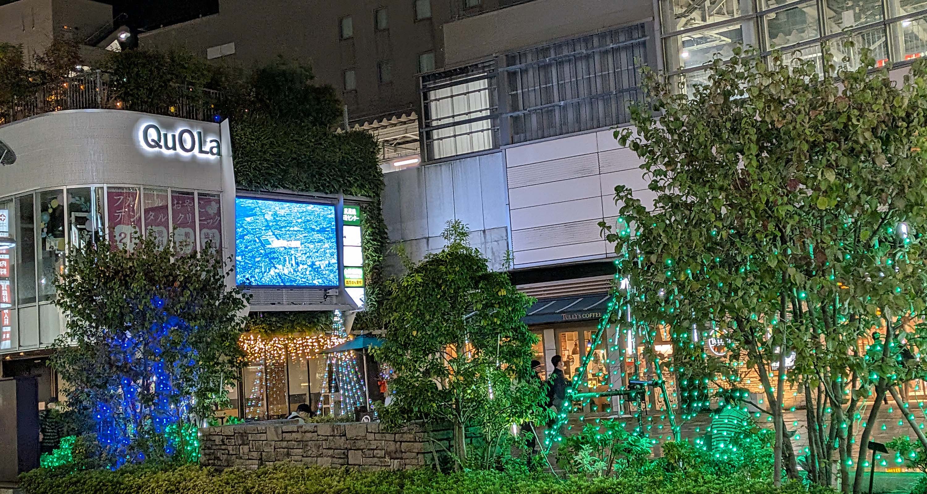 クオラビジョンは、武蔵境駅北口のクオラビルの壁面に設置される180インチの大型LEDビジョンです。通勤・通学で駅をご利用される方だけではなく、武蔵境の多くの方の目に触れるシンボリックビューイングです。
